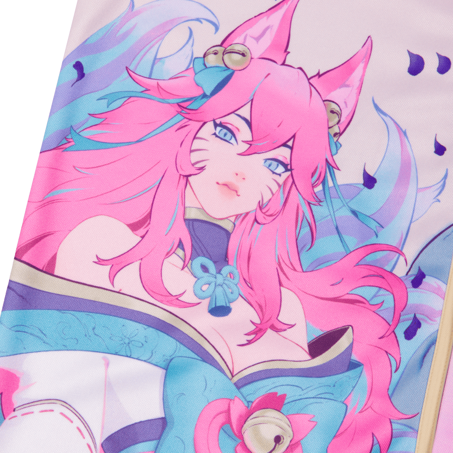 Ahri illustration and Spirit Blossom Harold mask rendition on front.
